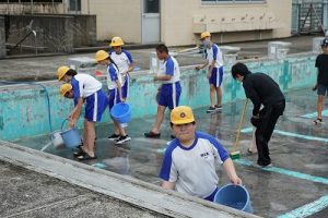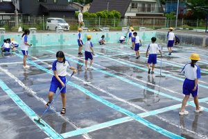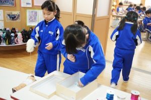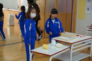 4年生の体育科では、1段だけの跳び箱の上で台上前転をしていました。ほんの少し高くなっただけで難しくなりますね。5年生が学習発表会で見せてくれたような高い跳び箱で台上前転ができるように頑張りましょう。