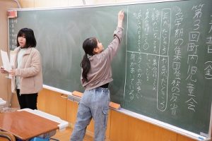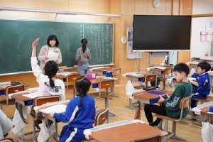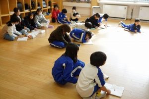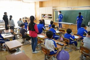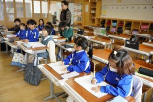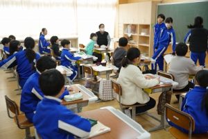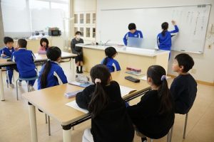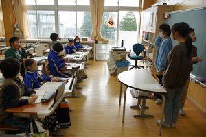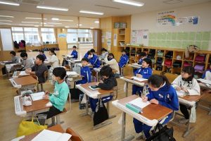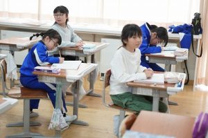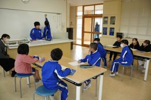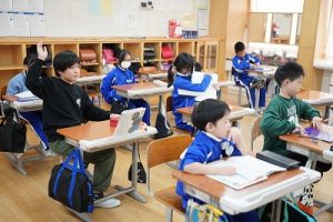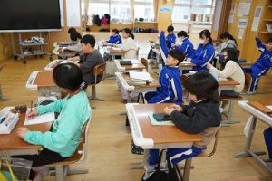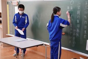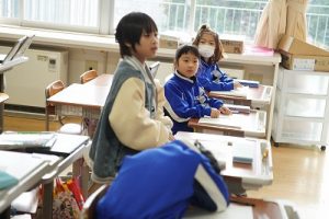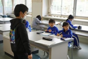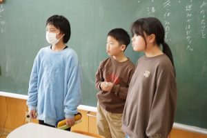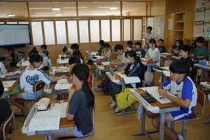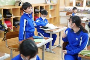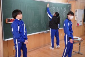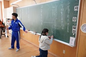 1年生の国語科では、日付の言葉遊びをしていました。「一月一日 お正月」「二月二日はみんなでこたつ」・・・というように、教科書に書いてある言葉を覚えて黒板に書きました。みんなで元気よく音読もしました。楽しそうですね。