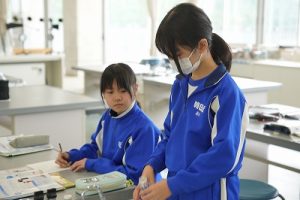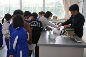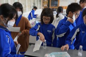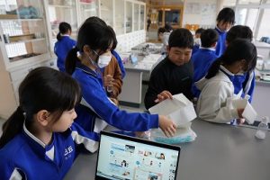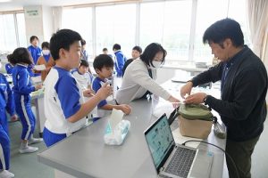 4年生の理科では、氷水を入れた容器で空気中の水蒸気をつかまえる実験をしていました。一人ずつ詰めたい容器を持って、校内のいろいろなところに行って、水蒸気を捕まえていました。