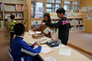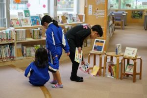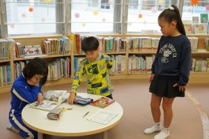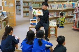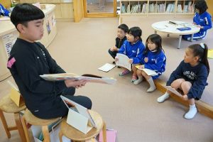 昼休みに図書室で行われている「お話タイム」は、図書館司書の先生が朗読してくれています。今日はその先生がお休みだったため、6年生の図書委員が朗読してくれました。とても上手に読んでくれて、素晴らしい「お話タイム」となりました。