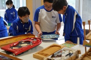 4年生は、いろいろな文房具を表す英語を学習していました。普段使わないような英語も出てきて、とても難しい学習です。