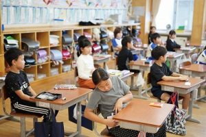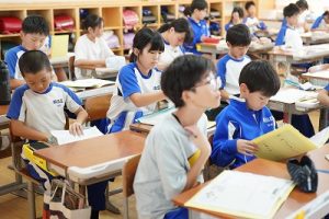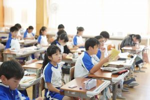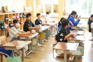 5年生の算数科では、「分数」「小数」「整数」の関係を学数しています。自力解決を目指したり、友達と相談したりと、真剣に頑張っています。いい学習態度ですね。