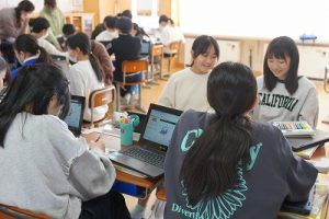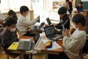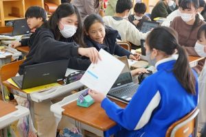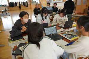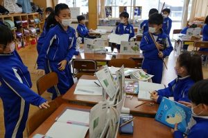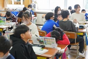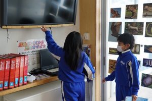 3校時の様子です。1年生の体育科ではなわとびをしていました。二重跳びができるようになった人もいます。すごいですね。6年生の外国語科では、比美乃江小学校とオンラインで行う沿革合同授業に向けて準備を進めていました。