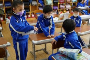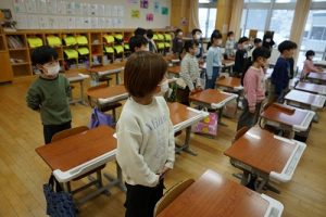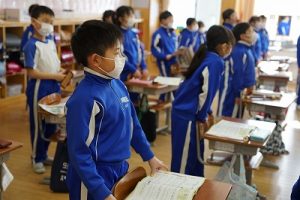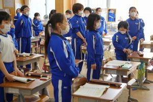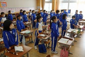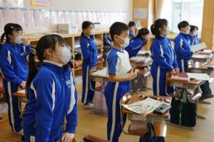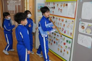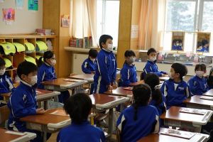 朝の会の様子です。感染症の予防のため、マスク着用を推奨し、しっかりと健康観察をしています。今日も元気にスタートしています。