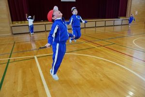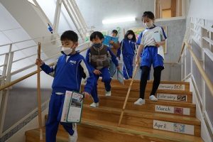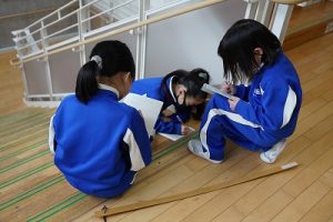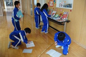 1校時の様子です。2階のオープンスペースには、たくさんのアルミ缶が置かれていました。今日は、4年生がアルミ缶回収を行ってくれました。6年生の体育科では、大縄跳び(8の字跳び)をしていました。みんな元気に頑張っています。