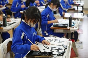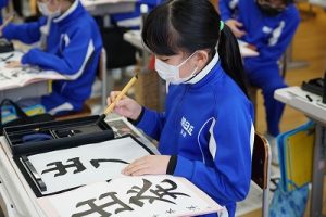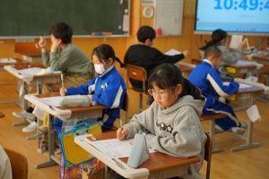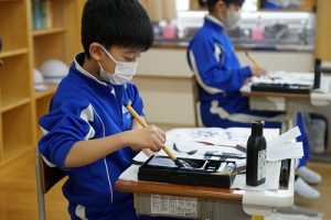 4年生の書写では、「出発」という文字を書いていました。新年にピッタリの言葉ですね。落ち着いた雰囲気もいいですね。