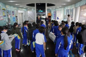 四季防災館の次に、富山市立神通碧小学校を訪れました。ユネスコスクール同士ということもあり、今年度、交流を行っています。神通碧小の紹介、合同合唱、グループごとのゲーム、防災クイズと、たくさん準備してくださいました。給食と弁当の会食も、とても楽しいものでした。本当に温かく迎えてくれて、心より感謝申し上げます。帰りには、猿まで見送りに来てくれました。このページの一番下の写真に、校舎の上から見送ってくれている猿が写っています。これからも、何らかの交流を続けていきたいと願っています。本当にありがとうございました。