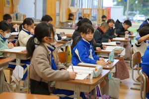 5年生の音楽科では、「キリマンジャロ」という曲を合奏していました。鍵盤ハーモニカとリコーダーが会話しているように感じる曲です。グループで教え合いながら一生懸命練習していました。