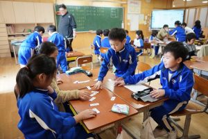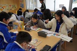 3校時の様子です。2年生は、かけ算九九のカルタをしていました。カルタは、歴史人物、都道府県、ことわざ等、いろいろなところで活用できます。6年生は、「My best memory」を発表していました。「BEST」を選ぶときに迷いますね。