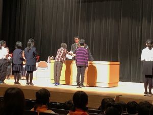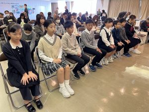 氷見市ユネスコ協会が創立50周年を迎え、11月9日に記念式典が行われました。朝日丘小学校を代表して、4~6年生の7名が、「ユネスコスクールとしての14年間の歩み」と題した発表を行いました。