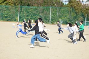 2年生は体育科でマット遊びをしていました。話を聞くときの体育座りの姿勢がとてもいいですね。