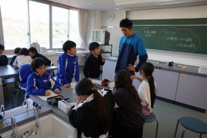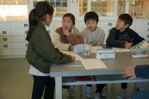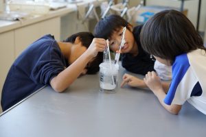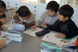 4年生の理科では、食塩の入った氷水で水を冷やす実験をしていました。試験管の中で水が凍っていく様子を時間の経過とともに観察していました。水の温度もしっかりと記録していました。知識を得るだけなら動画を見ればできますが、実際に実験することの価値は計り知れないものです。とてもいい体験になったと思います。