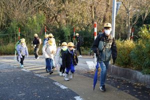 朝の登校風景です。子供たちが揃って登校してくるこの光景ほど嬉しいものはありません。さわやかな天気となり、西の空に見える月も、葉を落としたイチョウも、タブノキの新芽も、すべてが子供たちの登校を喜んでくれているように感じます。「元気に登校してきてくれてありがとう」という気持ちでいっぱいです。