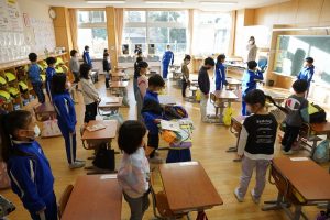 久しぶりにたくさんの子供が教室に揃っています。健康観察をしっかりと行い、しばらくはマスクもしてほしいと思います。2学期も、今日を含めて残り4日間です。最後まで頑張りましょう。