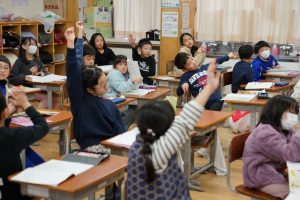 昼休みの図書室では、「お話タイム」が行われていました。たくさんの子供たちが聞きに来てくれました。STEAMミュージアムでは、アメジストの重さ当てクイズのコーナーがいっぱいでした。新しく登場した「富山県の市町村ボウリング」では、「〇〇市からやってみよう」というように市町村を覚える効果も期待しています。