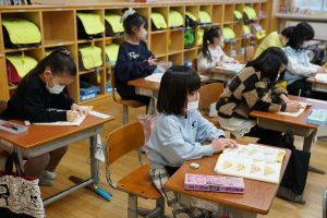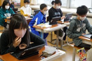 1校時の様子です。発熱で欠席する人が急増しています。これ以上感染が広がらないように、授業では、友達と関わることよりも、個人で学習する時間が増えているようです。縦割り清掃も昨日から学年清掃に変更しています。本日予定していました「町内児童会」「全校で遊ぼうプロジェクト(6年生の企画)」は延期としました。感染拡大を防ぐために、みんなで気を付けていきたいと思います。