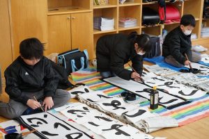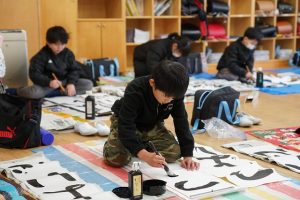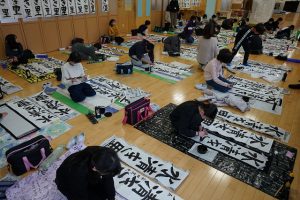 9時30分から全校一斉に校内書初大会が行われました。冬休み中の練習の成果を発揮して、真剣に書くことができていました。子供たちの書初作品は、10日(金)の午前中まで展示します。よろしければ、ご覧ください。