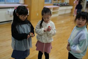 1年生の生活科では、「コマ回し」「おてだま」「だるま落とし」等の伝承遊びを体験していました。とても楽しそうでした。ご家庭でも、ご一緒に遊んでいただけたらと思います。