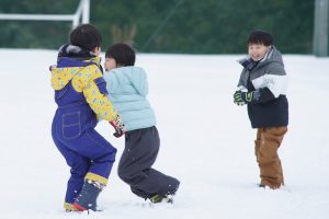 2校時後の休み時間に雪遊びをしている子供たちがいました。寒さを感じないくらい元気でした。こんな姿を見ると、「少し」は雪が降ってほしいと思えてきますね。