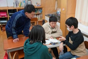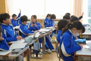 5年生の外国語科の様子です。「Where do you want to go?」「I want to go to a restaurant.」「why?」「Because I want to eat omurice.」などという会話を楽しんでいました。みんなの前での発表も堂々とできていました。