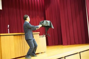 先日、スタディメイトの先生とのお別れの式を行いましたが、今日は、2名の講師の先生とのお別れの式を行いました。お二人の先生は、いわゆる「1年契約」で来ていただいておりましたので、本日、離任式を行いました。4月8日には、「複数年契約」の先生方とのお別れの式が行われます。