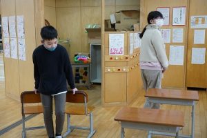 下校前に、それぞれの学年では整理整頓が行われました。2年生は、下足トレイをきれいに洗っていました。5年生は、来年度の教室に、机と椅子を運んでくれました。1年の最終日は、翌年のスタートの年となります。