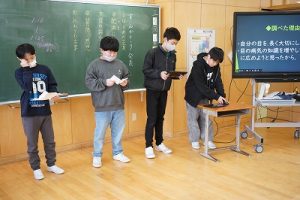 5年生が1月に行ったすこやかトークの発表を、4年生の前で発表しました。4年生は、「こんなふうに発表するんだ」「自分は〇〇について調べたいな」などと考えながら聞いたことだと思います。伝統ある「すこやかトーク」が引き継がれていきます。