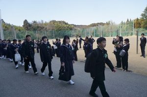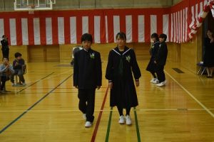 おはようございます。いよいよ今日は卒業証書授与式が行われます。卒業生、在校生が一緒に行う最後の式ですので、一生懸命頑張ってくれることでしょう。6年生は、8時40~50分に登校してきますので、5年生以下での集団登校となります。新しいリーダーのもと、気を付けて登校してきてほしいと思います。本日は給食がなく、12:00下校となっております。よろしくお願いします。