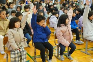 1~5年生が体育館に集まって卒業証書授与式の練習を行いました。いすを持参し、よびかけや歌の練習を行いましたが、とてもよい緊張感がありました。明日は、6年生を交えて、全校での練習が行われます。