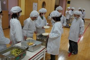 1年生、2年生が手際直給食の準備をしていました。給食の配膳が終わった後、給食の準備をサポートしてくださった先生方へ感謝の手紙を渡しました。1年間、どうもありがとうございました。
