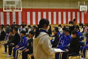 卒業式を3日後に控えた6年生が、最後のお楽しみ会を企画し、全員でキックベースを楽しみました。紅白幕が張られた体育館でのキックベースは、ひと味違った感じがしたことでしょう。いい思い出になりましたね。