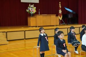 4月9日(水)に行われた入学式の写真です。堂々と入場する様子、話をしっかりと聞く様子が素晴らしいです。また、おもしろいところでは、素敵な笑顔を見せてくれました。学校生活を楽しんでくれることを願っています。