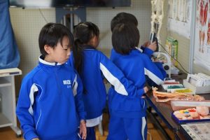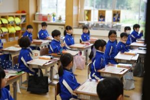 1校時の様子です。4年生では、外国語活動で英語を使ったゲームが始まろうとしていました。子どもたちは、ゲームが大好きです。