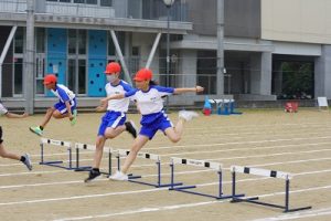 南部中学校の体育の先生が、朝日丘小学校の6年生、十二町小学校の5・6年生に、ハードル走の指導をしてくださいました。ハードルを「飛び越える」ではなく、「走り越える」コツを教えていただきました。今日の授業で教えてもらったことを生かして練習を行い、5月23日(金)に行われる氷見市小学校連合体育大会でいい走りを見せてくれることでしょう。