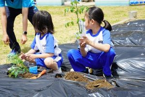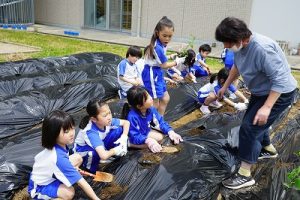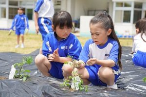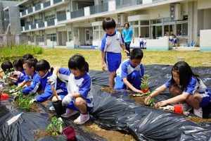 2年生が、野菜の苗を植えました。早く終わった人が、やり方を教えてあげる姿が素敵でした。