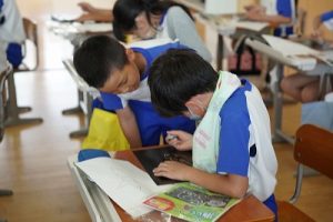2校時後の休み時間のプレイグラウンドの様子です。2年生は、野菜の苗に水をやっていました。3年生は、ホウセンカやヒマワリの芽が出たことを教えてくれました。1年生も、アサガオに変化があったようです。お世話を頑張っていますね。