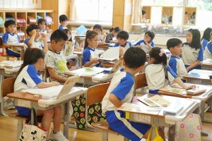 5校時の様子です。3年生は、スポーツテストの反復横跳びを行っていました。6年生は、ろうそくの炎が燃えているときの空気の流れを調べていました。今日は、とても暑い日になりましたが、みんな頑張っていました。