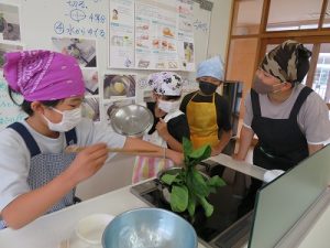 今日の午前中に、5年生の家庭科で、調理実習を行いました。ジャガイモとほうれん草を調理したようですね。きっと美味しくできたことでしょう。