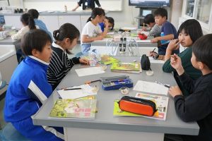 昼休み、図書室では「お話タイム」が行われていました。真剣な、そして楽しそうな表情がいいですね。隣のSTEAMミュージアムでは、化石の値段当てクイズに挑戦している人が多くいました。ある6年生から「こんなにたくさんの人が来てくれて校長先生嬉しいですね。」と声をかけられました。正にその通りです。企画に乗ってくれて嬉しく思います。
