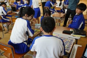 2校時の様子です。5年生の理科は、理科室で発芽の条件についてまとめていました。理科室で授業をするのはとても楽しいです。6年生の外国語科では、「スモールトーク双六」をしていました。とても楽しそうです。いい自作教材ですね。