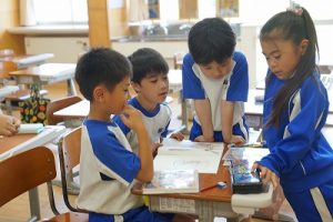 昼休みの様子です。4年生は、図画工作科で取り組んでいるビー玉の迷路づくりをしている人が数人いました。遅れているのではなく、楽しいから自主的に行っているのだそうです。意欲的ですね。今日も「お話タイム」にたくさんの子どもたちが集まっていました。