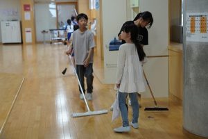 縦割り清掃の様子です。全校で協力し合って学校をきれいにしてくれています。すばらしい日本の文化だと思います。子どもたちの頑張りに感謝しています。