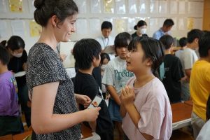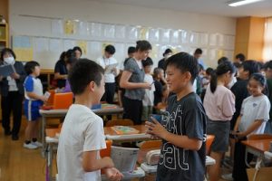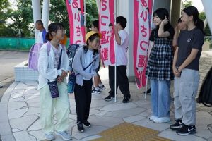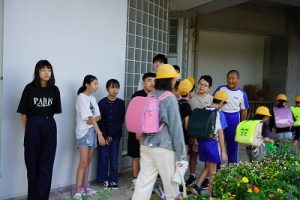 イチョウの実が色付いてきました。まだまだ暑い日が続いていますが、秋の足音も聞こえてきています。今朝は、学年ごとのあいさつ運動の最終日でした。決められた日に玄関前に立ってあいさつ運動を行ってきました。最終日の今日は6年生が担当です。これからも、元気な挨拶を心がけてほしいと思います。