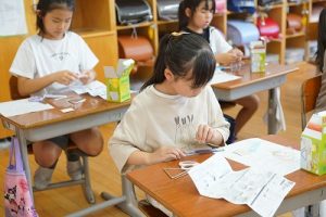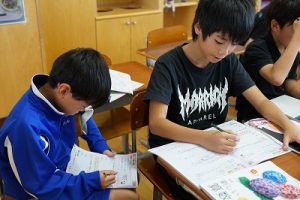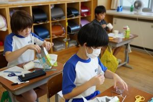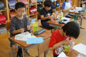 3年生の理科では、音の性質について学習しています。全体で音について話し合った後、一人一人が教材を作っていました。実験が楽しみですね。