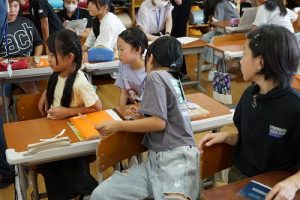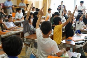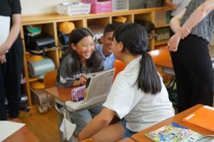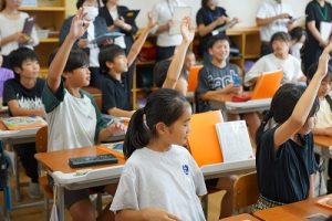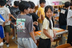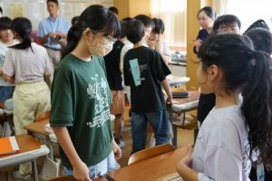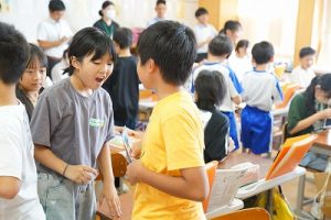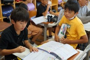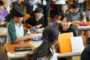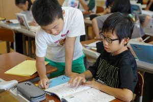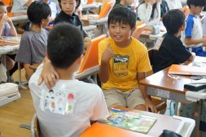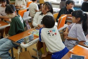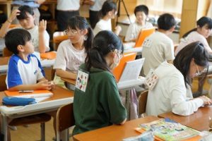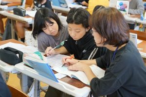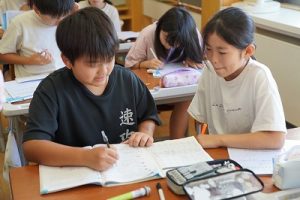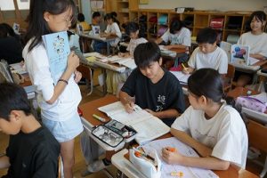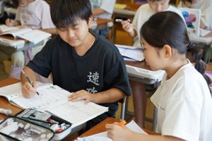 5年生の算数科では、整数の性質について学習していました。問題を解いて、友達と教え合う雰囲気がいいですね。
