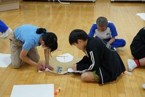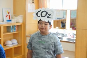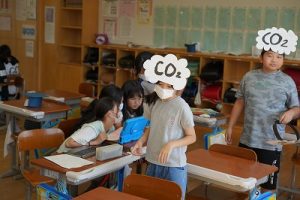 4年生は、学習発表会で行う「未来を守ろう! SDGs大作戦」に使用する小道具を製作していました。「博士」「地球」「CO2」「子供」など、様々な役に必要なものを考えて作っていました。