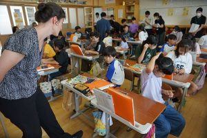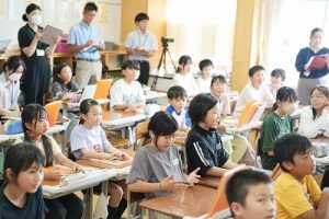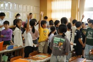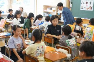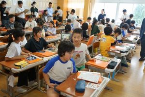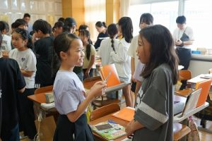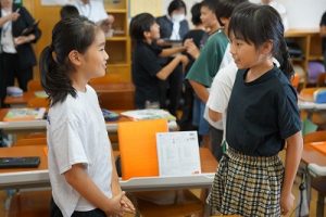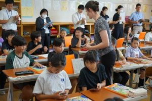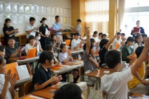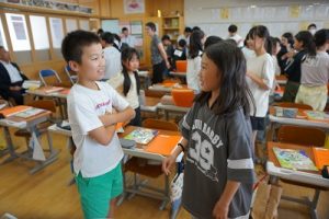 氷見市小学校教育課程授業研究会で、5年生の外国語科の授業が公開されました。子どもたちが生き生きと活動している姿が印象的でした。教材や友達、自分との対話を通して、主体的に学ぶことができ、すばらしいと授業でした。