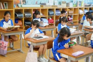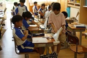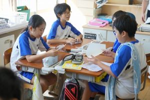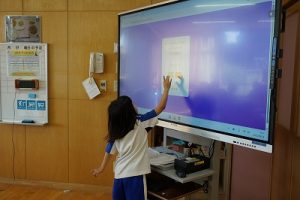 朝活動の様子です。電子黒板で暗算の練習をしたり、学習発表会での出し物の読み合わせをしたり。グループで「ミニ会議」をしている学年もありました。それぞれ、時間を有効に活用しています。