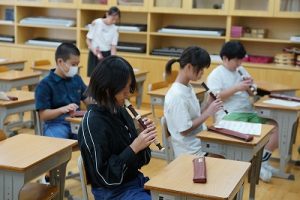 2校時の様子です。1年生の体育科では、元気に鬼ごっこをしていました。6先生は学習発表会に向けての器楽練習を頑張っていました。
