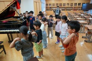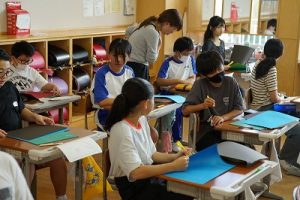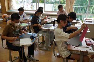 5校時の様子です。5年生は学習発表会の練習、6年生は学習発表会に展示する作品の台紙作りをしていました。学習発表会に向けての取組が、いろいろなところでなされています。